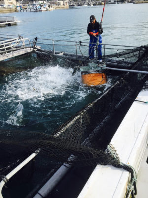 粉末にしたオリーブの葉っぱを、出荷前の2週間エサに混ぜて育てている。こうやって育ったハマチは、血合いのピンク色がとてもきれいで、臭みとは全く無縁で、脂もとてもさっぱりしてバツグンのおいしさ。そりゃ、一度このハマチの味知ってしまったら、もう他のハマチ食べる気はしなくなってしまって当たり前。この前も頂き物の天然ハマチを久しぶりに食べたけど、もう臭みを感じて食べられない。