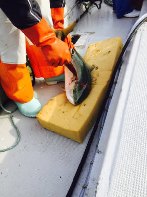 機会があったらオリーブハマチのその美しい魚体を見て頂きたい。ハマチは英語では「Yellow tail」と呼ばれていて、背中からしっぽにかけて伸びた一筋の黄色いラインが特徴。で、オリーブハマチはそのイエローラインが、際立って美しくクッキリと伸びている。これだけでもハマチがいかに健康に育ったかが良く分かる。