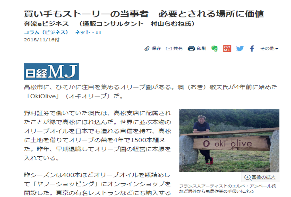 日経MJというメディアにオキオリーブの記事を取り上げてもらった。とてもありがたいことだ。 https://www.nikkei.com/article/DGXKZO37789130V11C18A1H56A0 […]